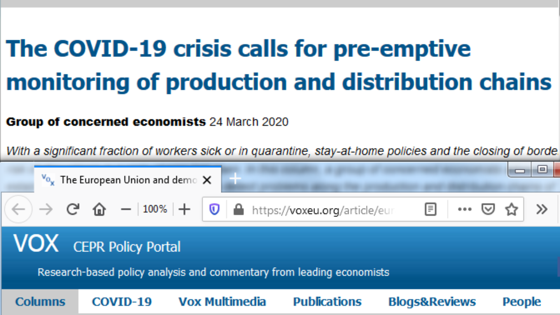 CeBER researchers join the COVID-19 crisis CEPR debate
